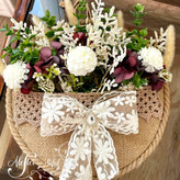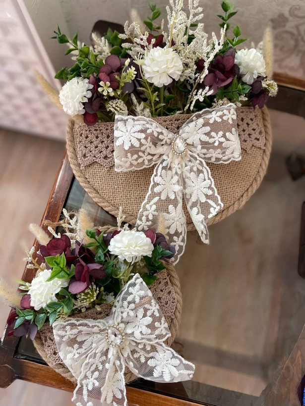 متاسفانه این کالا در حال حاضر موجود نیست. میتوانید از طریق لیست بالای صفحه، از محصولات مشابه این کالا دیدن نمایید.اجرا شده روی بیس دایره ای ام دی اف به قطر ۲۵ و ۱۵ سانت . تزئین شده با یراق قلاب بافی ، تور ، گل مصنوعی