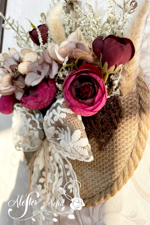 آویز رودری گل زرشکی ۲۰ سانتی (پس کرایه )