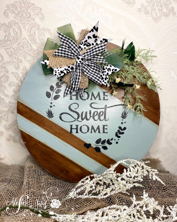 اجرا شده روی بیس دایره ای شکل ام دی اف ، قطر ۳۰ سانت ، تکنیک کهنه کاری ، رنگ اکریلیک و گل های مصنوعی وارداتی