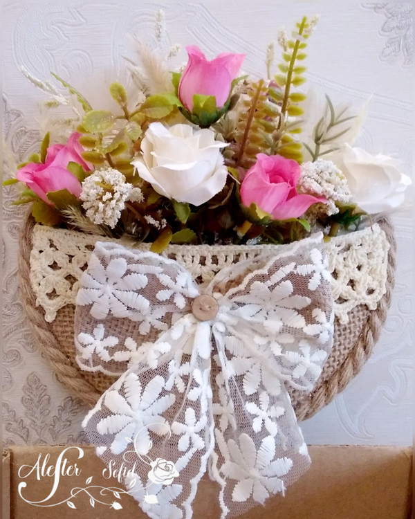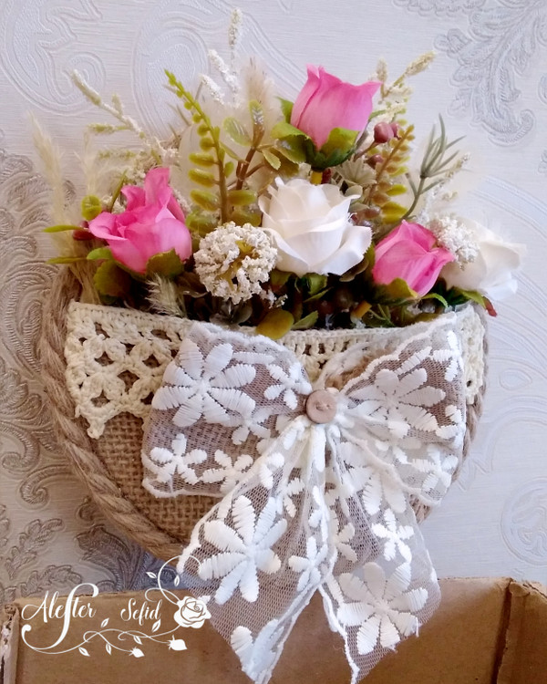 آویز رودری تلفیق قلاب بافی و گل مصنوعی