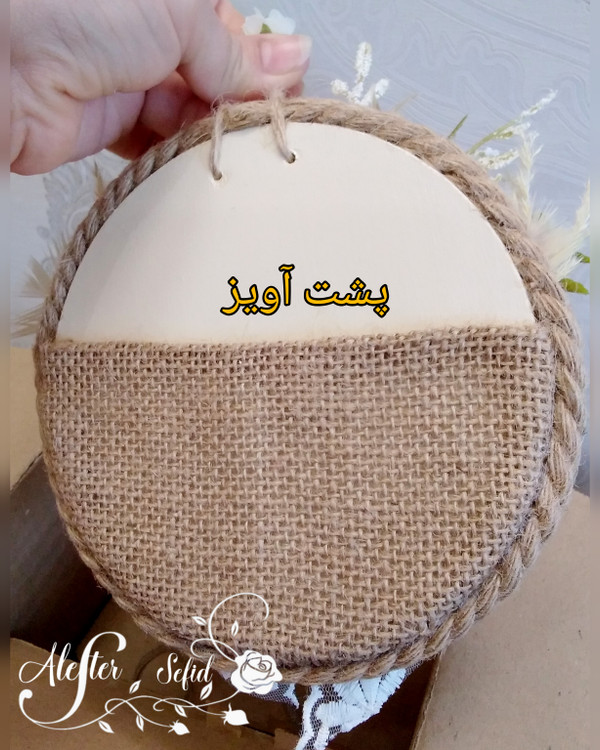 آویز رودری تلفیق گل مصنوعی و قلاب بافی . اجرا شده روی بیس ام دی اف دایره ای به قطر ۱۵ سانت.