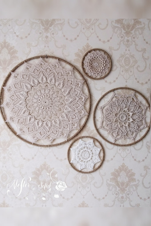 دیوارکوب قلاب بافی ، ماندالا قلاب بافی ۴ تکه(پس کرایه )