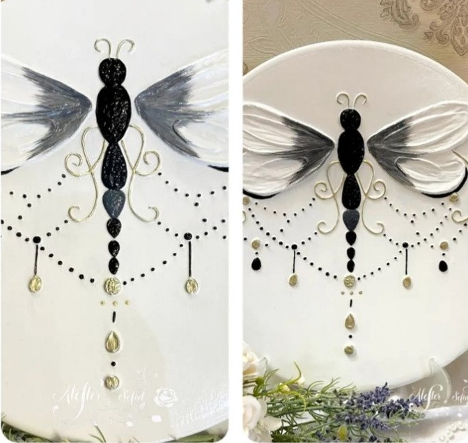 سایز کار با قطر ۳۵ سانت میباشد . اجرا شده روی بشقاب سفالی، با متریال رنگ اکریلیک ، تکسچر ، اسپری تثبیت کننده رنگ ، رنگ طلای مایع و ...